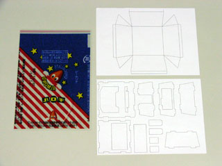 外装のイメージは、チロルチョコの包装紙をスキャナで取り込んで加工します。